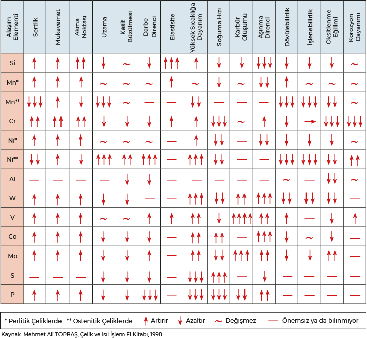 Alaşım elementlerinin çelik yapısına etkileri aşağıdaki şekilde tanımlanabilir.